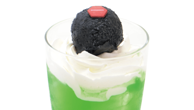 メロンソーダ+ホイップクリーム+黒バニラアイス+もなか