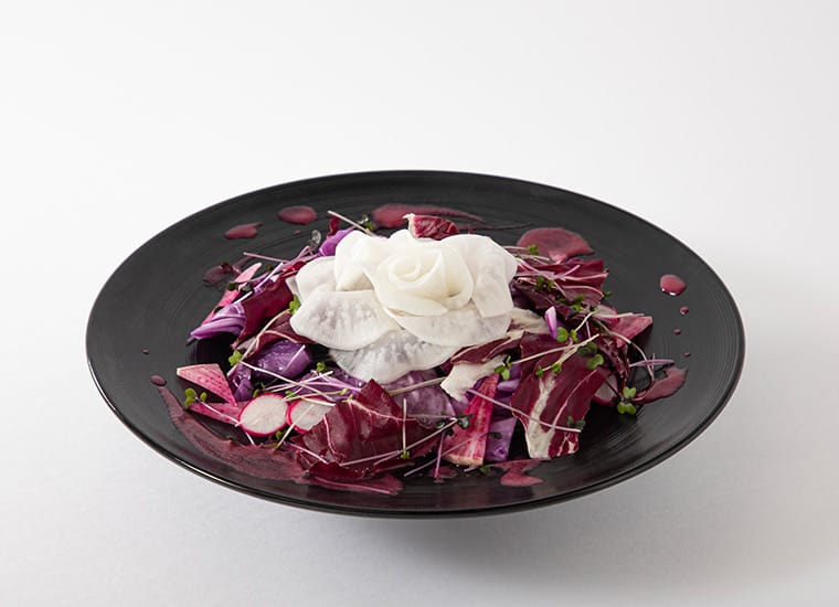 スカーレットの憎しみや葛藤が溢れる黒いガーリックトマトソースのパスタ「果てしなきスカーレット それは果てしなき復讐の旅」や、スカーレットが大粒の涙を流すシーンをイメージしたフルーツとゼリーのパフェ「果てしなきスカーレット 愛を知りたい。」などがラインナップ!