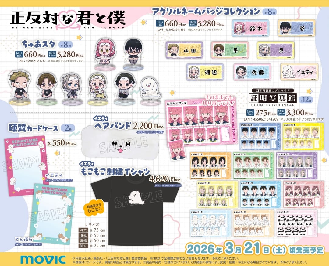 繊細な心理描写や巧みな情景の描き込みが共感を呼ぶ、「阿賀沢紅茶」先生による人気漫画を原作とするTVアニメ「正反対な君と僕」のポップアップストアが、TSUTAYA 11店舗にて2026年2月20日より開催される。鈴木みゆ・谷悠介・山田健太郎・東紫乃らのイラストを使用した新作グッズが多数ラインナップ!