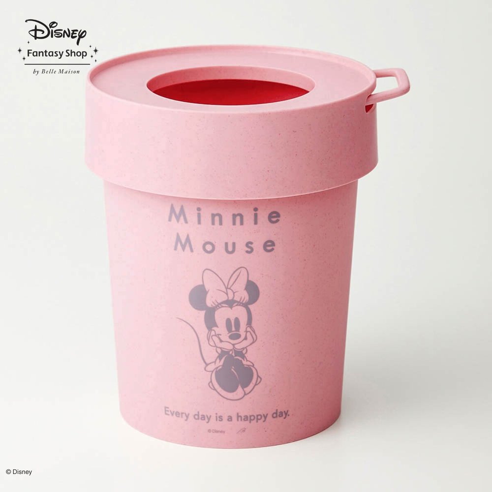 前面に「ミニーマウス」をデザインした5Lサイズのゴミ箱。中のゴミが見えにくく、持ち手付きなので移動もスムーズです。