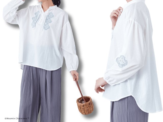 スラブコットンの刺しゅうブラウス