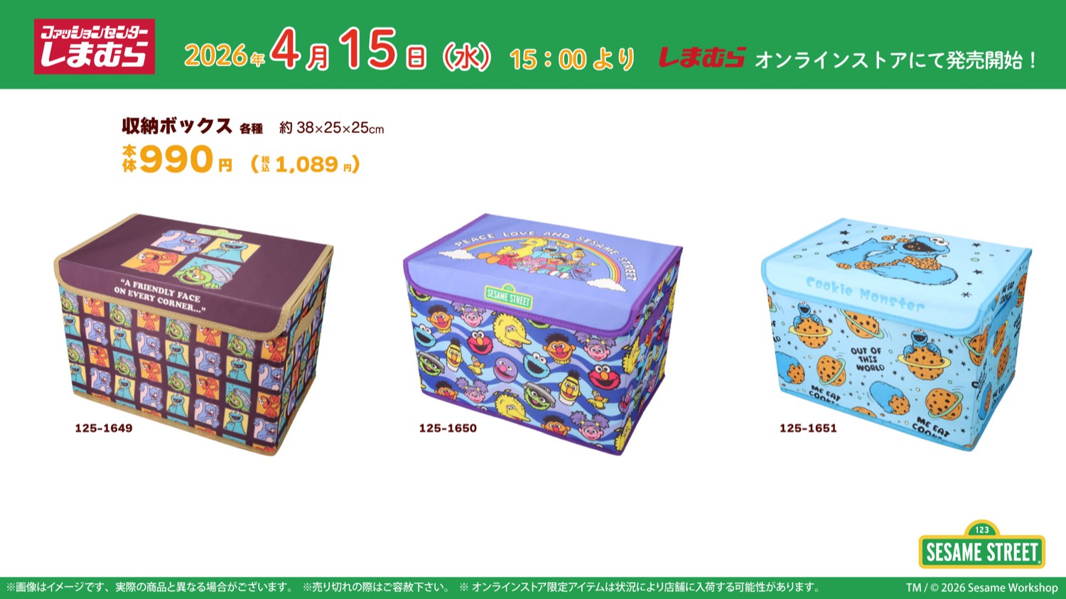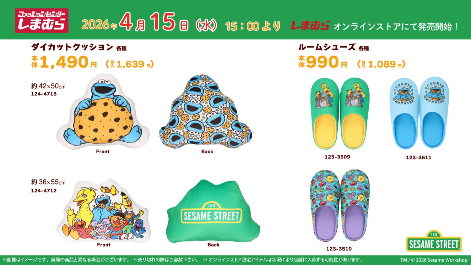 2026年4月15日よりのファッションセンター「しまむら」の公式オンラインストア「しまむらパーク」にて「セサミストリート」のインテリアグッズが発売される。