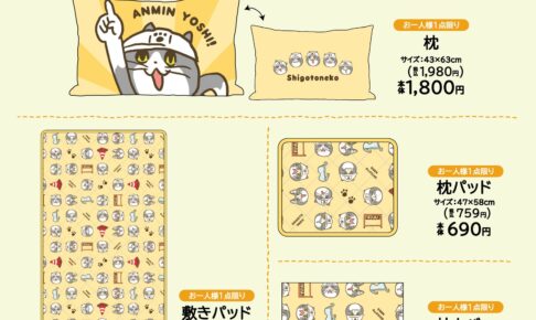 2023年9月9日より全国のアベイルにて、『仕事猫』の総柄デザインを使用した「枕」や「枕パッド」といった寝具が発売される。