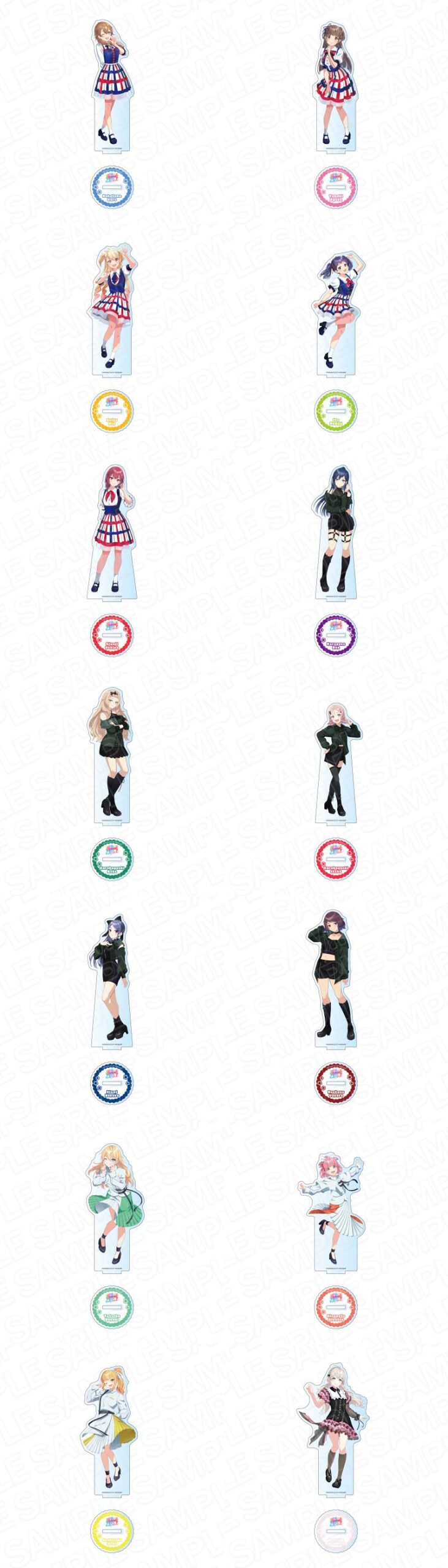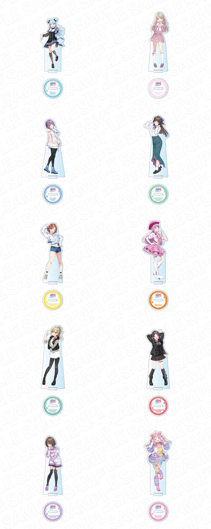 春、杏夏、理王ら人気アイドル24人を描いた「アクリルフィギュア」や、TINGS、HY:RAIN、FFF、ゆらゆらシスターズ、ひまわりシンフォニー、LAUGH DiAMOND それぞれユニットメンバーの集合デザインに注目したい「ミニアクリルアート」など全3種がラインナップ。