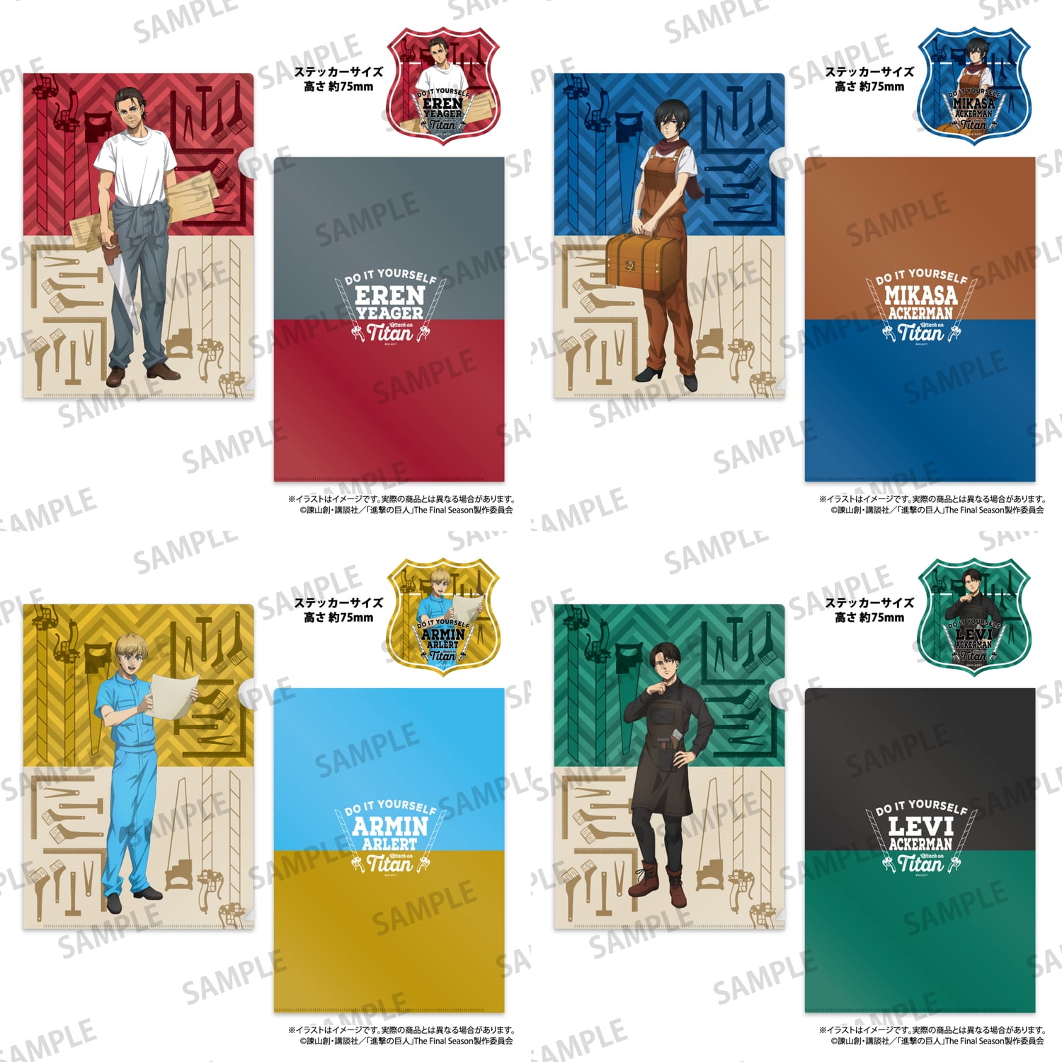 「進撃の巨人」クリアファイル・ステッカーセット (DIY) [全4種] 各990円(税込)