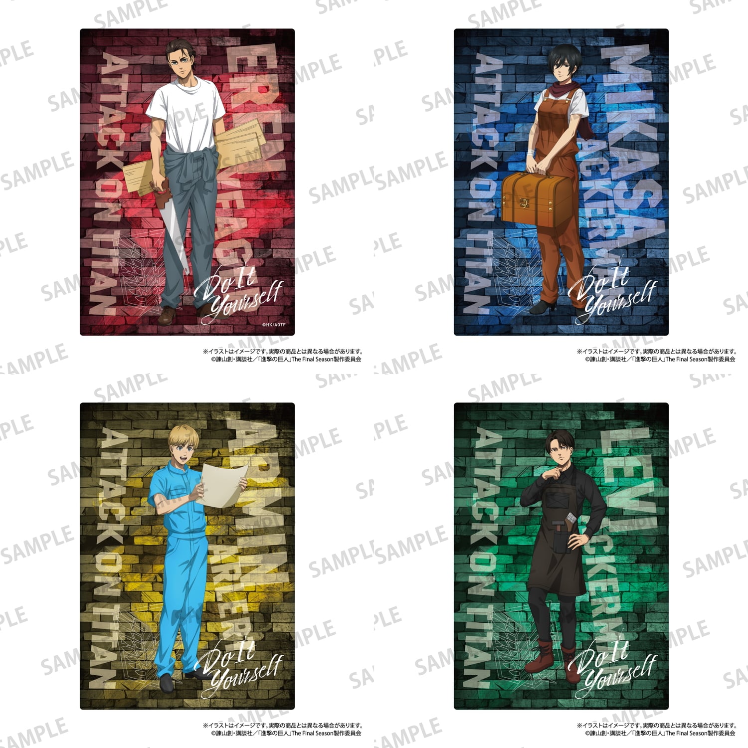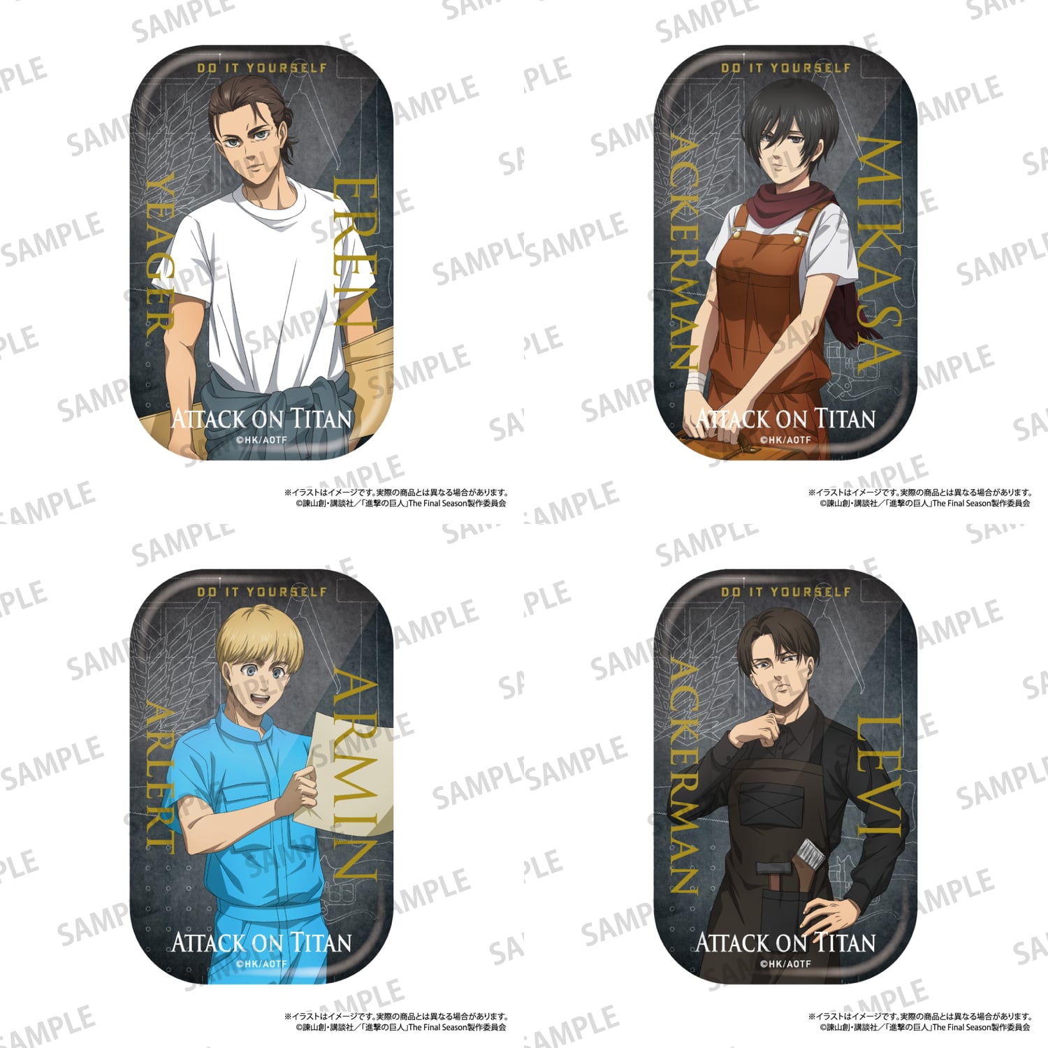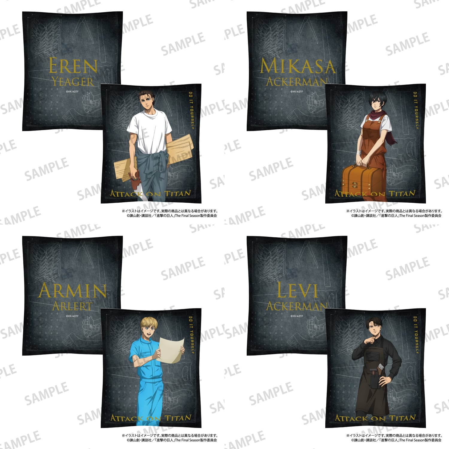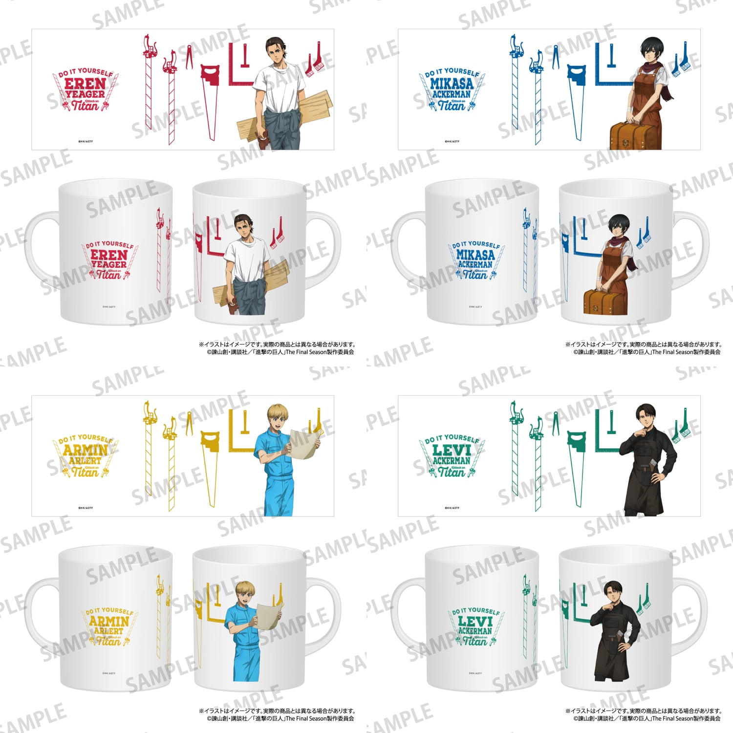 エレン、ミカサ、アルミン、リヴァイがDIYに挑む 新規描き下ろしグッズラインナップ
