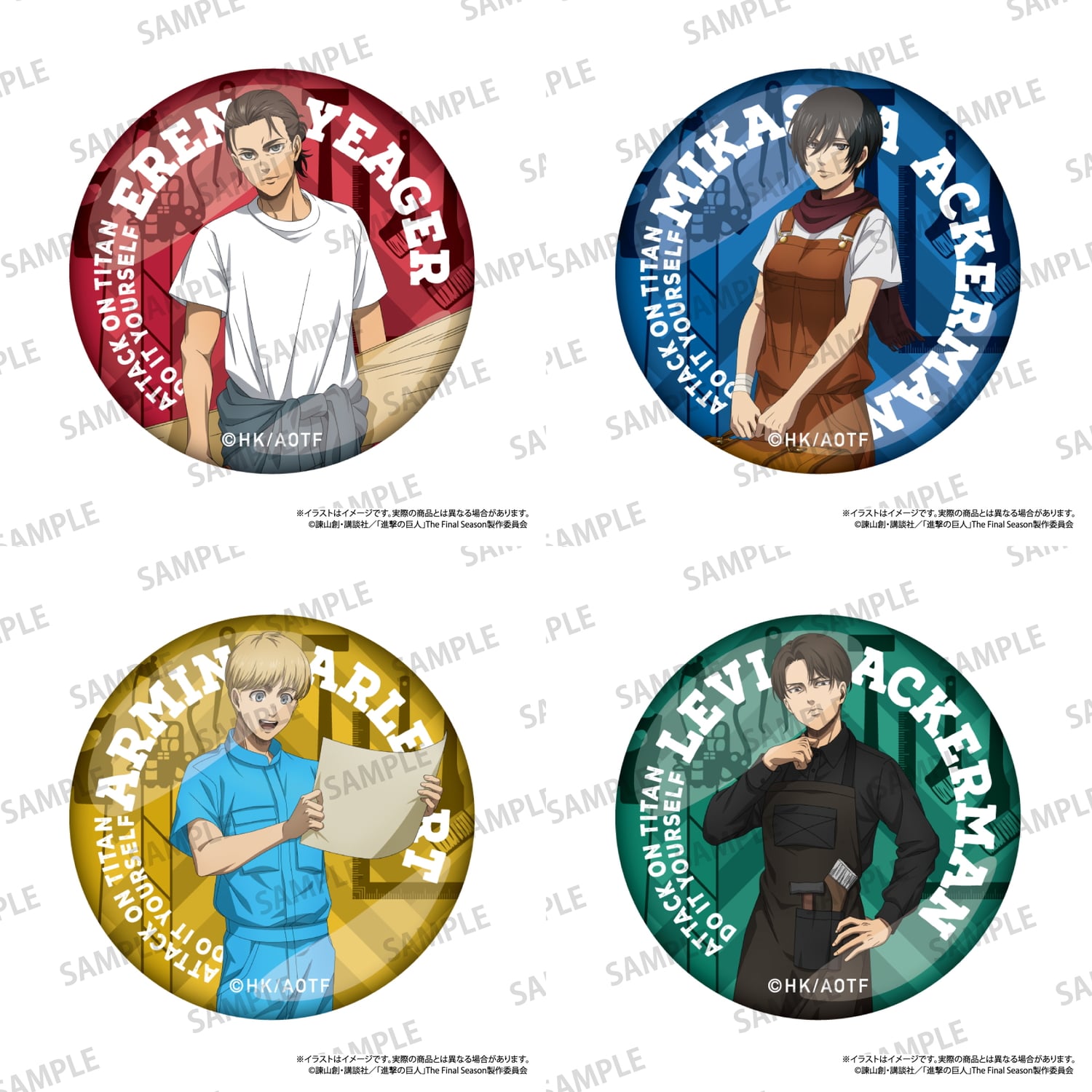 「進撃の巨人」丸缶バッジ (DIY) [全4種] 各550円(税込)