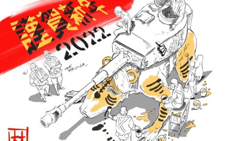 テレビアニメ第4期「進撃の巨人」The Final Seasonの監督を務める林祐一郎監督からは、”寅年”にちなんでピークの「車力の巨人」を虎模様にペイントするマーレ兵達の様子が描き下ろされた。