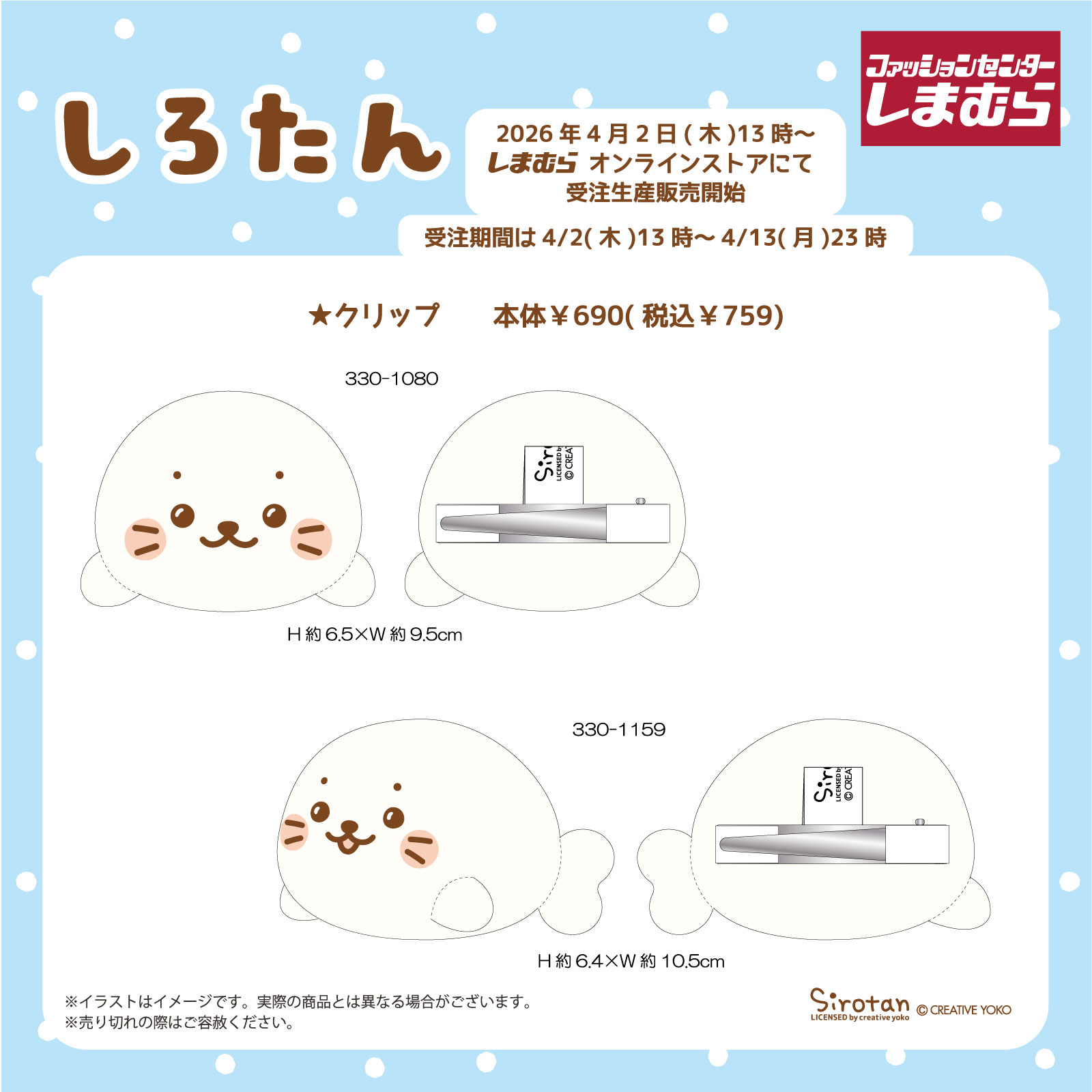 2026年4月2日より、ファッションセンターしまむらの公式オンラインストア「しまむらパーク」にて「しろたん」のコラボグッズを受注販売!