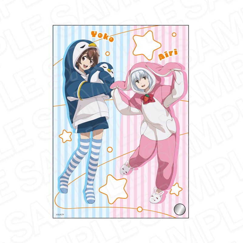 ふわふわモコモコで暖かそうなパジャマ姿が可愛いヨーコとアイリを描いた「アクリルフィギュア」や「特大タペストリー」など全7種がラインナップ。