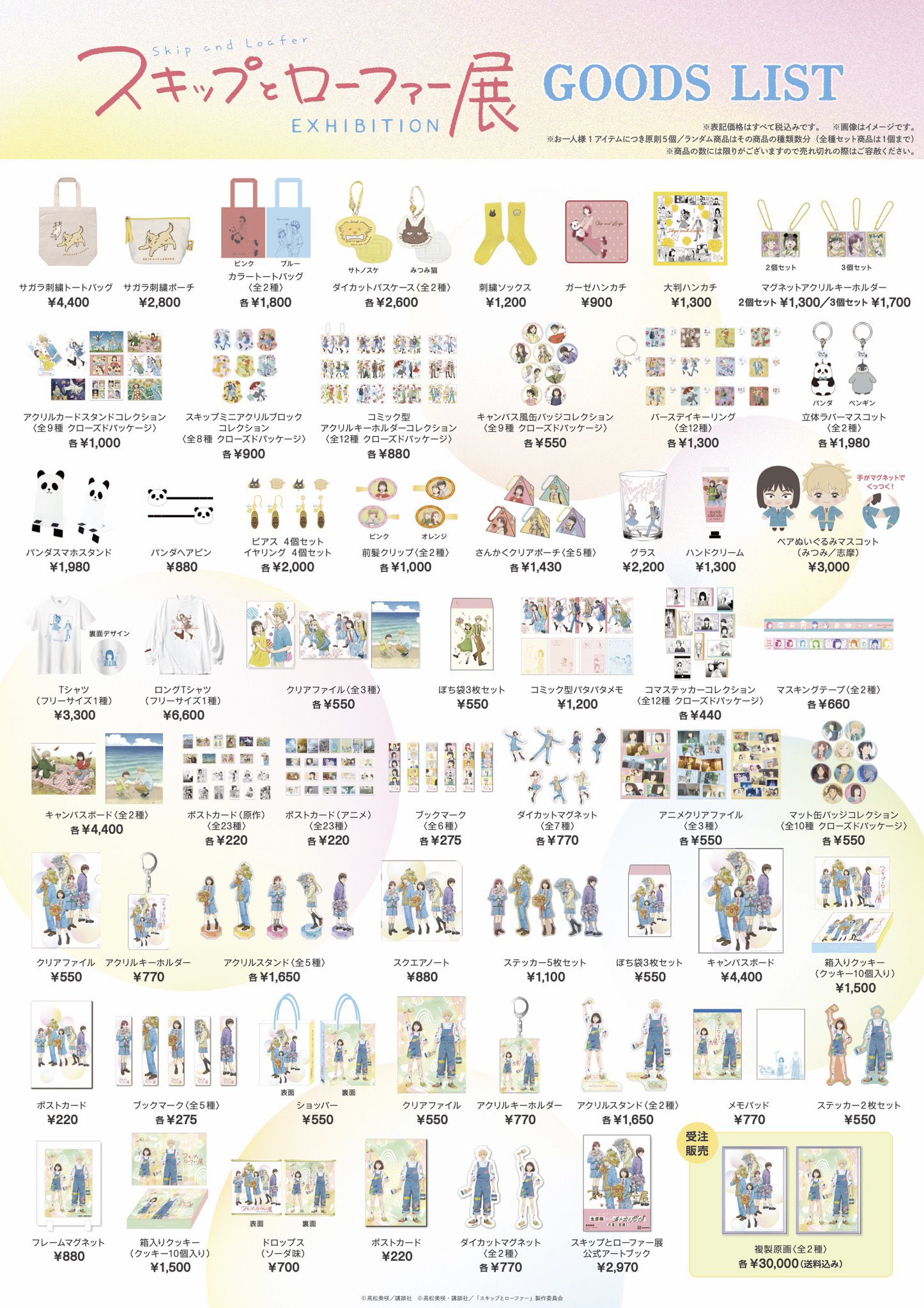 2026年4月23日より藤崎本館7階催事場にて開催される「スキップとローファー展」の仙台会場ではオリジナルグッズが多数登場!