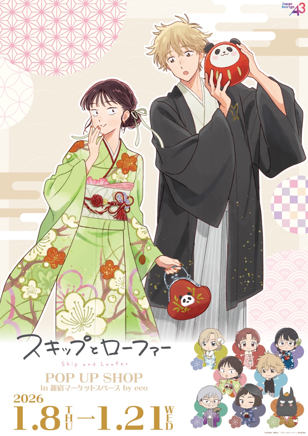 高松美咲先生による大人気漫画を原作とするTVアニメ「スキップとローファー」× eeoのポップアップストアが、新宿マーケットスペースにて2026年1月9日〜1月21日まで開催される。