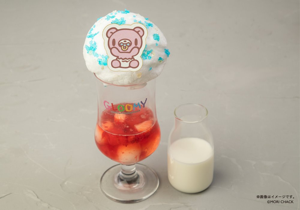 フワフワのわたがしに可愛いベビーグルーミーが乗った見た目もキュートなパフェ。食べると口の中でパチパチ弾けるキャンディが楽しさのアクセントに♪牛乳を注ぐと新たな食感のハーモニーが楽しめる、食後にもぴったりなデザートです。