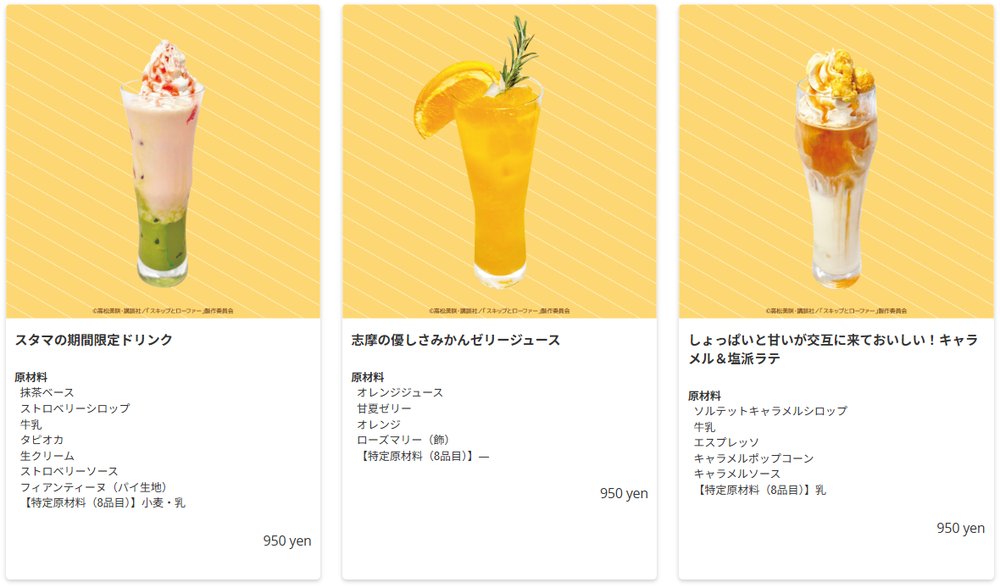 コラボメニューをご注文で、「オリジナルコースター(全9種・ランダム)」を1枚プレゼント!