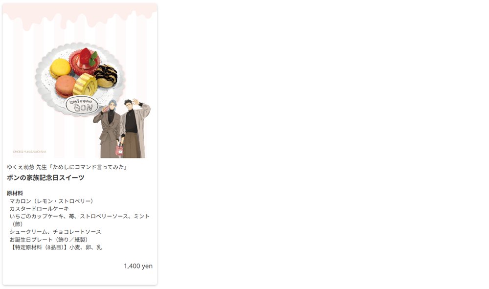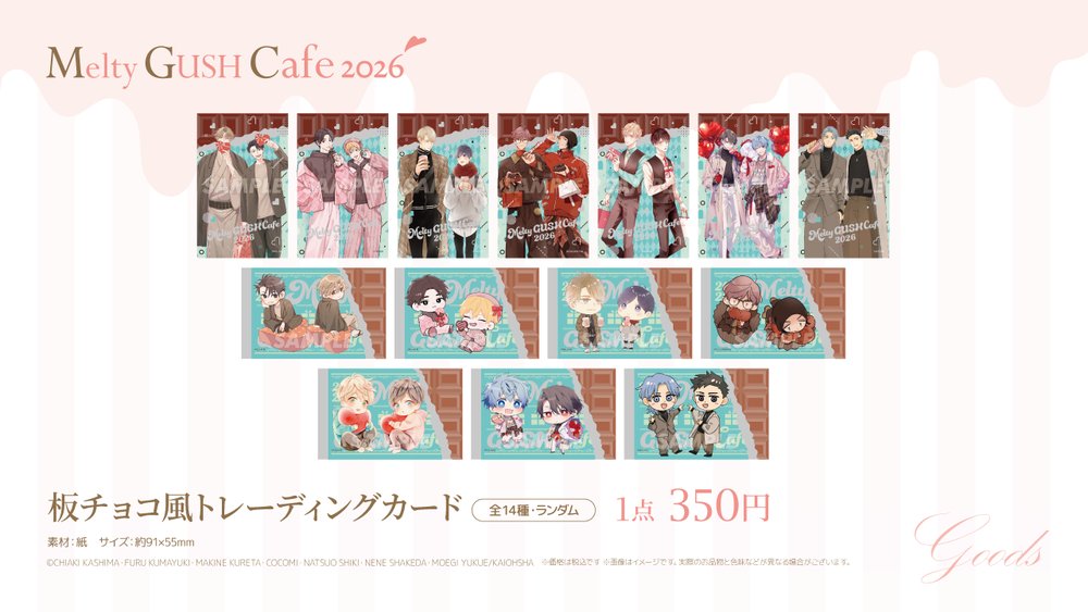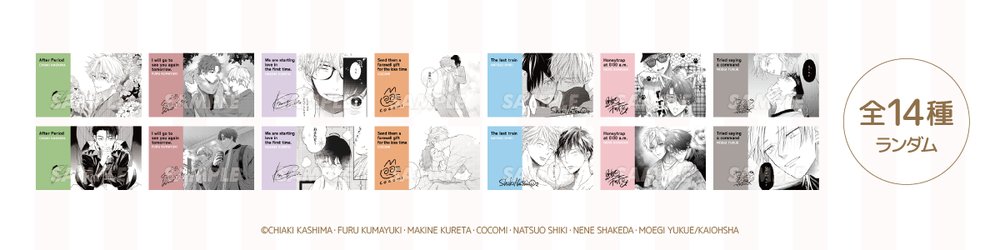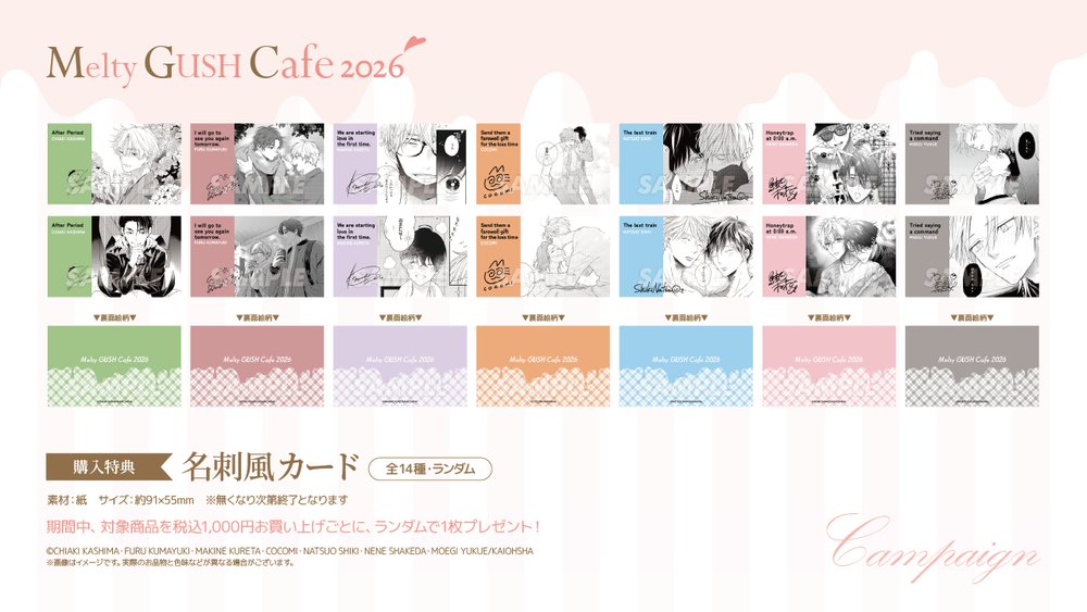 期間中、作品関連商品を税込1,000円お買い上げごとに、「名刺風カード(全14種・ランダム)」を1枚プレゼント!