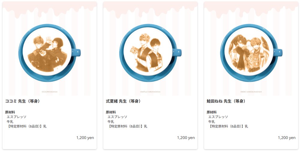 ①「対象のコミックスをご購入」、②「対象グッズを税込2,000円以上お買い上げ」、③「コラボメニューのご飲食(ドリンク+フード)」①~③全て達成で、ご希望の絵柄を1点プレゼント!