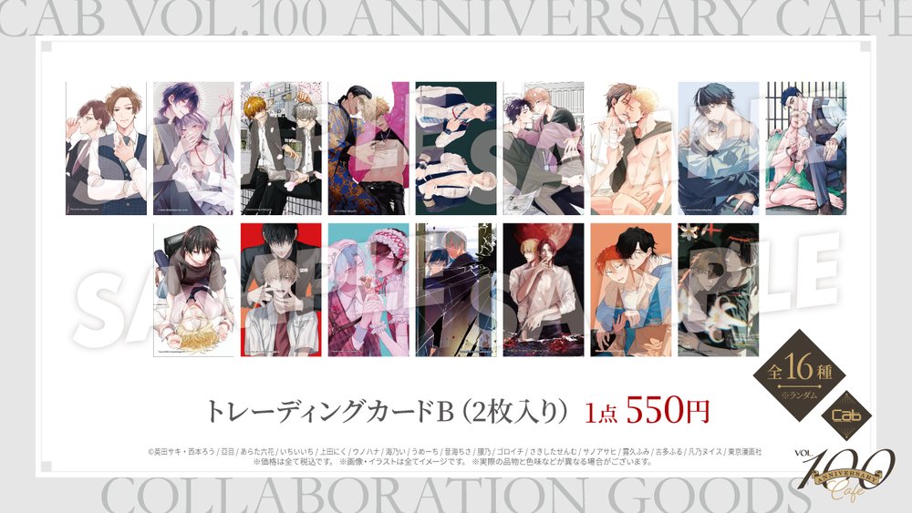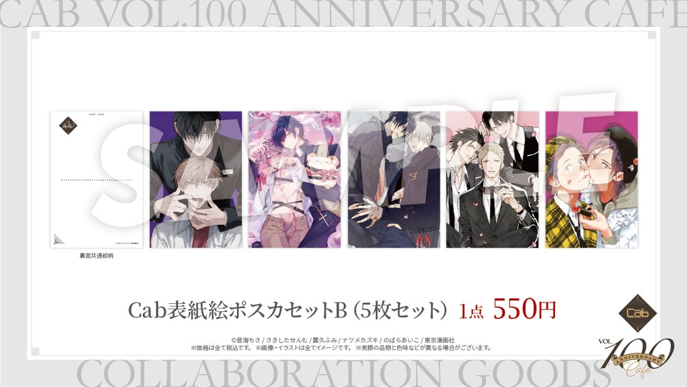 BLアンソロジー「Cab」Vol.100号 到達記念として、コラボカフェ『Cab Vol.100 Anniversary Cafe』が秋葉原はSTELLAMAP Cafe(ソフマップ AKIBA アミューズメント館7階)にて、2025年10月22日(水)〜11月9日(日)まで開催。なお、9月30日(火)より予約開始。