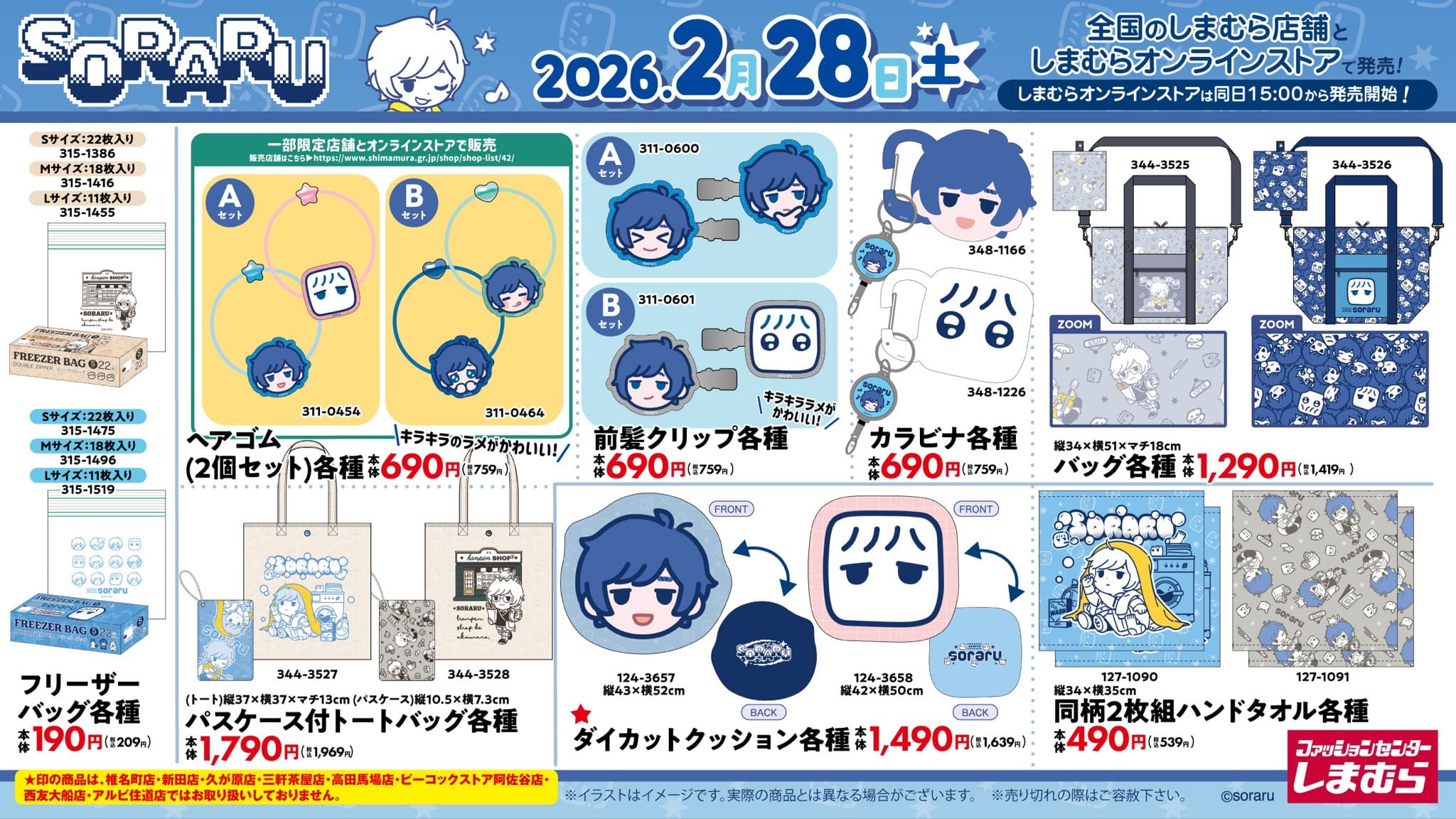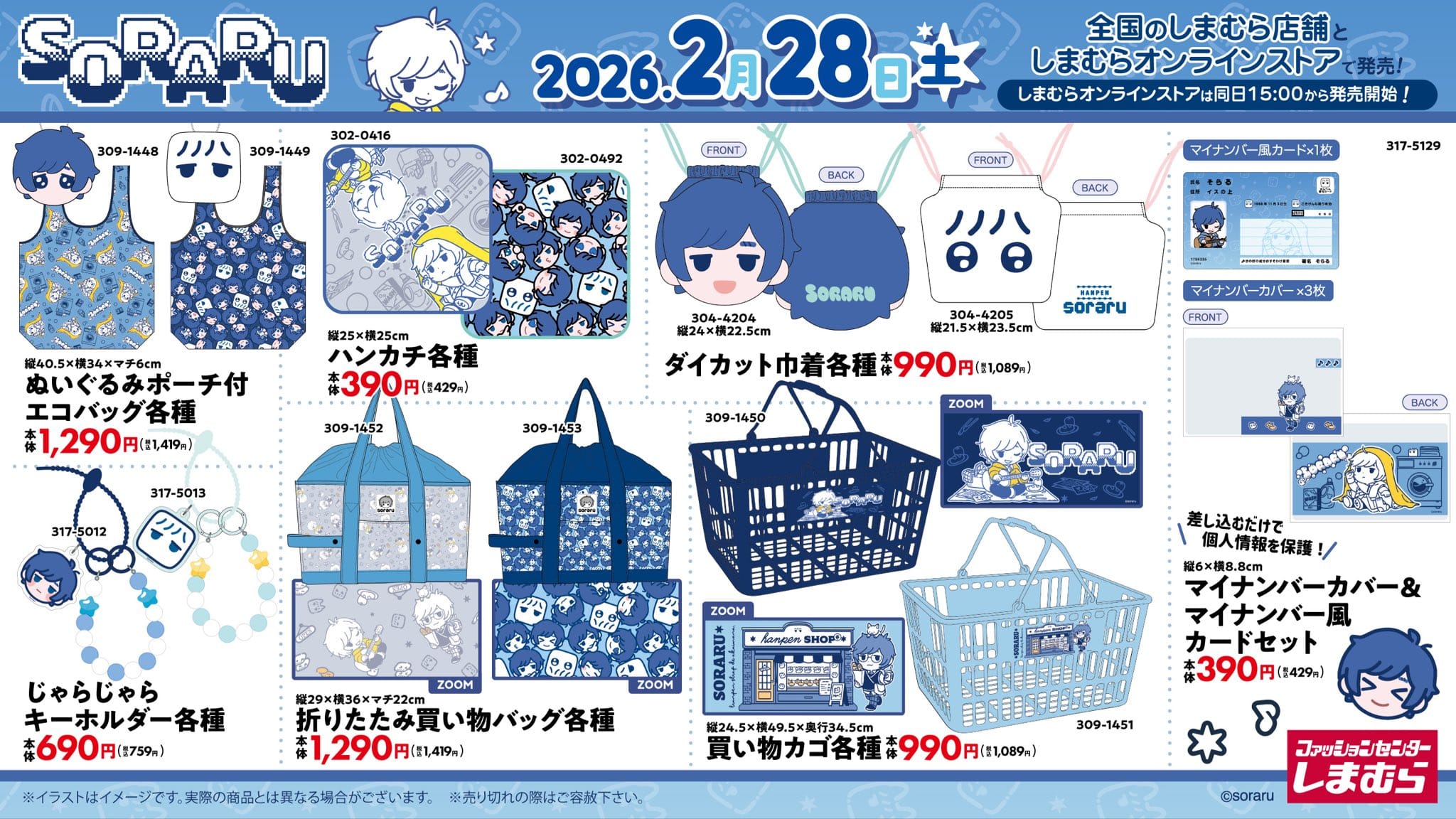 2026年2月28日より全国のファッションセンター「しまむら」と、公式オンラインストア「しまむらパーク」にて「そらる」のアパレルアイテムやコラボグッズを順次発売!