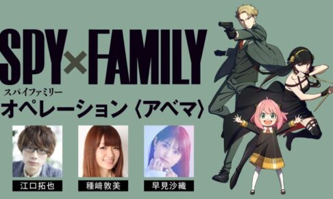 SPY×FAMILYの「オペレーション 〈アベマ〉」では、ロイド役「江口拓也」さん、アーニャ役「種崎敦美」さん、ヨル役「早見沙織」さんらが出演する他、MCには「しずる (KAƵMA、村上純)」を招き、アニメ「SPY×FAMILY」の第4話の見どころや最新情報をお届けする。