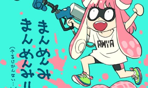 そして、イカの発する声の空耳として有名な「まんめんみ!」を元気に叫びながらピンクのインクを撒き散らすアーニャの横には、小さく「やるじかんない…」という遠藤先生の心の声らしき呟きが…。