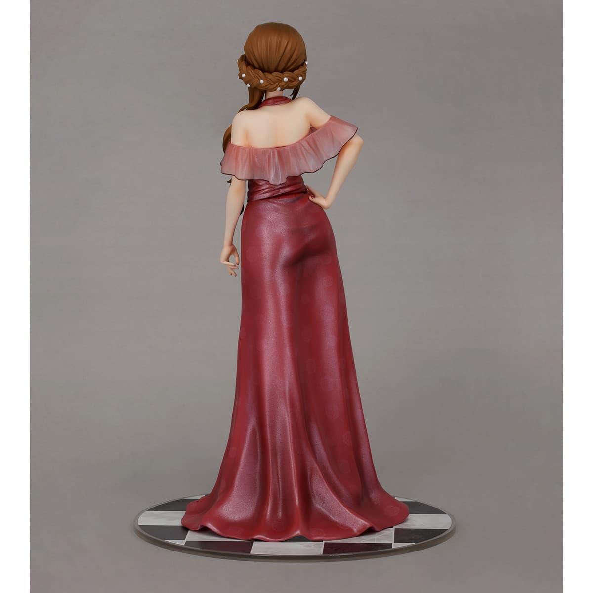 堂々とした佇まいに知性と気品を宿す表情、スリットからのぞく美しい脚線、しなやかなシルエット── 真紅のドレスには細部にまでこだわった繊細な装飾と彩色が施され、彼女の魅力を余すところなく再現。