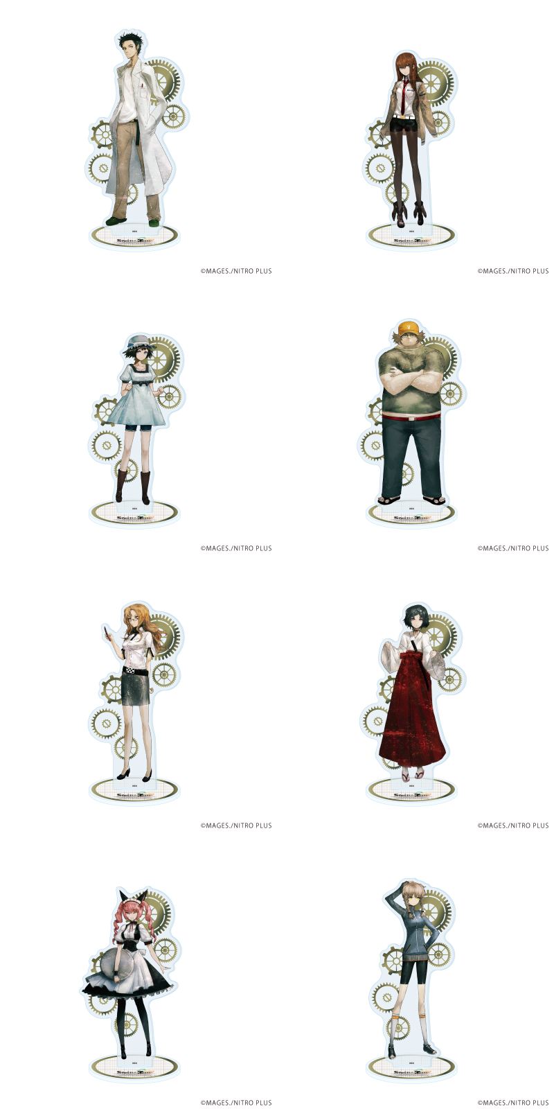 グラフアートのほか、公式イラストを使用した「アクリルスタンド」も同時発売。 岡部倫太郎、牧瀬紅莉栖、椎名まゆり、橋田至、桐生萌郁、漆原るか、フェイリス・ニャンニャン、阿万音鈴羽ら8人を並べて飾ってシュタゲの世界観に浸ろう。