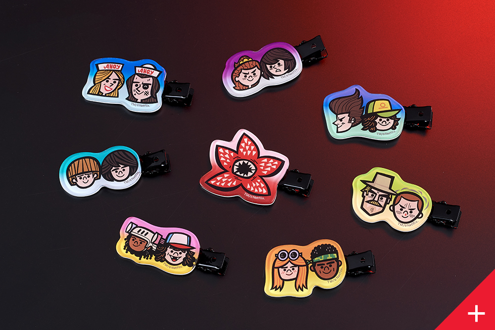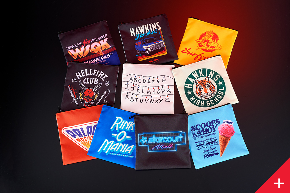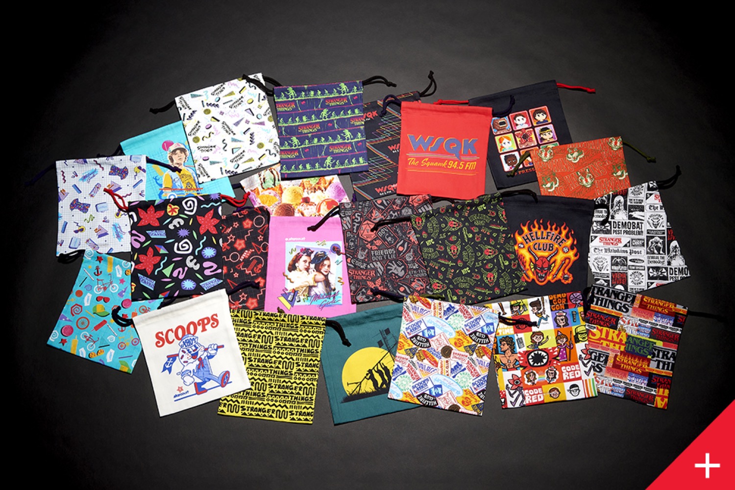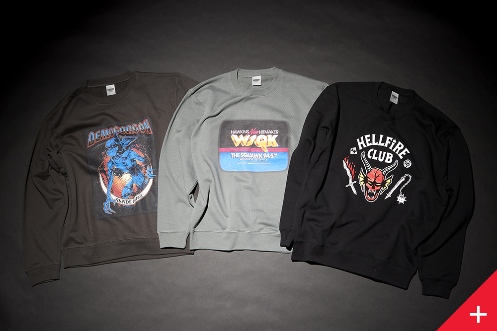 「ストレンジャー・シングス 未知の世界」ポップアップストアでは、イレブン(エル) / ダスティン・ヘンダーソン / ウィル・バイヤーズたちの、ドラマの世界観をイメージしたイベント限定ビジュアルを使用した新作グッズが多数販売される。
