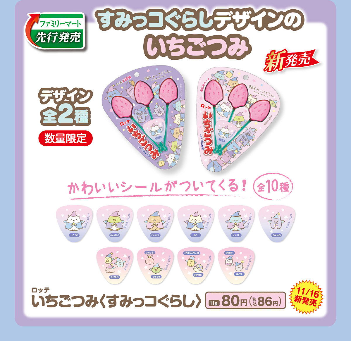 さらに、11月16日からは「映画すみっコぐらし ふわもちパン」と、ファミマ先行販売の「すみっコぐらしデザインのいちごつみ」が登場する。