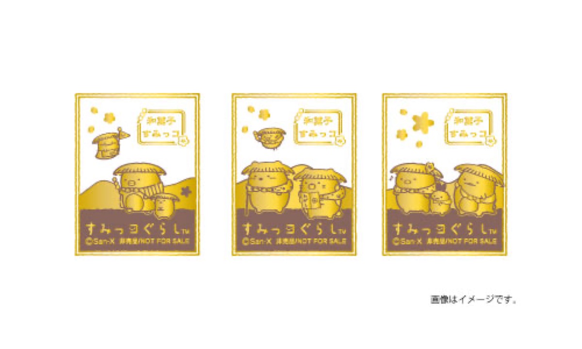 「すみっコぐらし」ポップアップストアでは、イベント限定のおいしい和菓子になりきったすみっコたちのイラストを使用した新作グッズが多数販売される。
