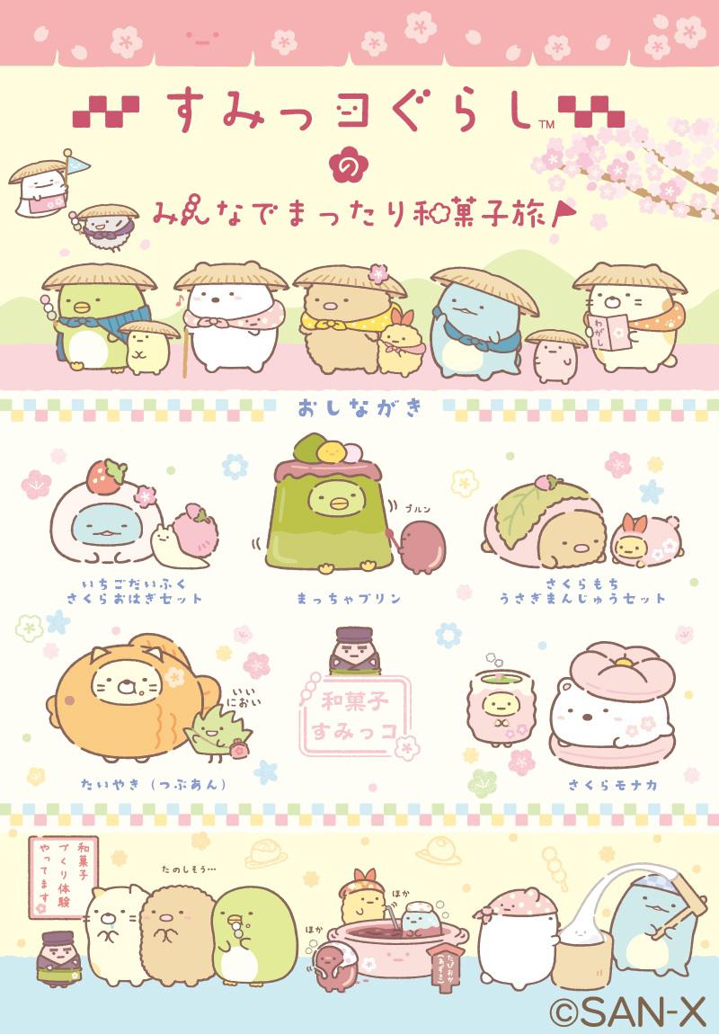 「すみっコぐらし」ポップアップストアでは、イベント限定のおいしい和菓子になりきったすみっコたちのイラストを使用した新作グッズが多数販売される。
