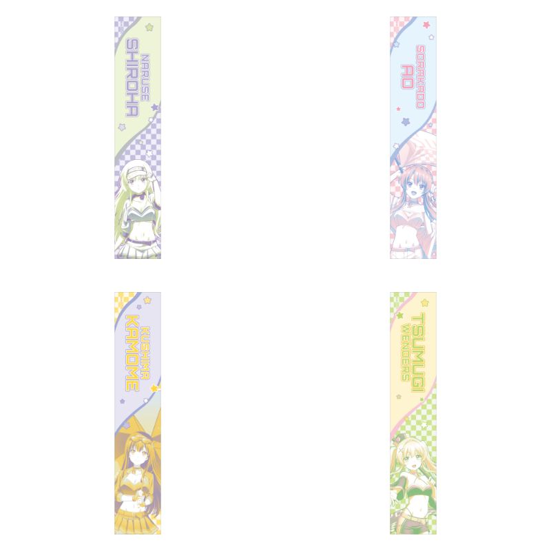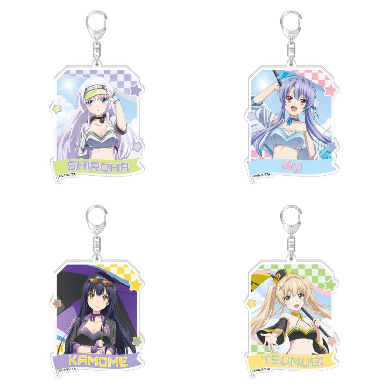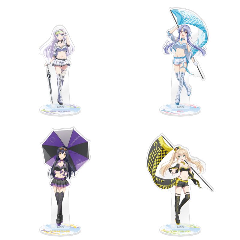 レースクイーン衣装に身を包んだ、鳴瀬しろは、空門蒼、久島鴎、紬ヴェンダースら4人を描いた「缶バッジ」「BIGアクリルキーホルダー」「BIGアクリルスタンド」「等身大タペストリー」など全12種がラインナップ。 ミニキャラ姿がかわいい描き起こしグッズも必見。