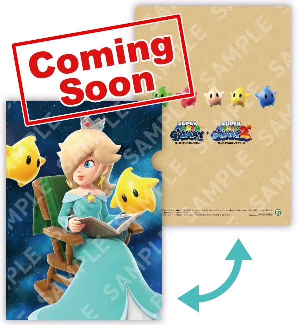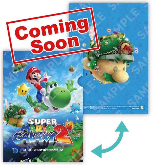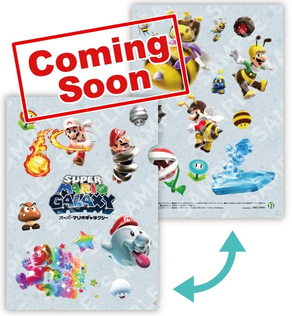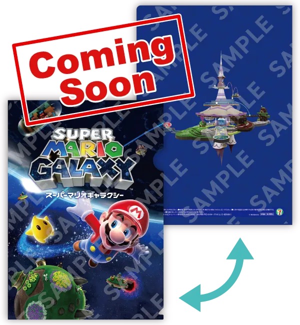 「マリオ × セブンイレブン」では、対象商品を購入の方にスーパーマリオギャラクシー・スーパーマリオギャラクシー 2がデザインされた「マリオ A4クリアファイル」からお好きな絵柄を1枚プレゼント!
