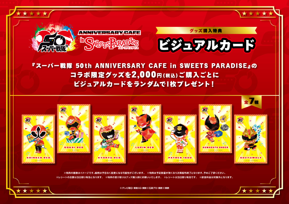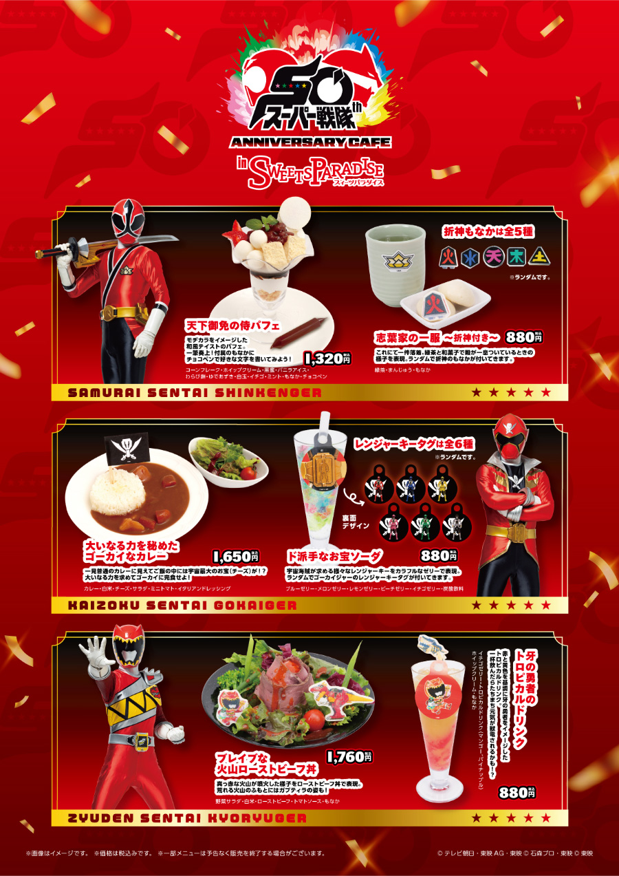 2026年2月6日より、スイーツパラダイス5店舗 (東京/兵庫/京都/愛知/広島)にて「スーパー戦隊 50th ANNIVERSARY CAFE in SWEETS PARADISE」を開催!