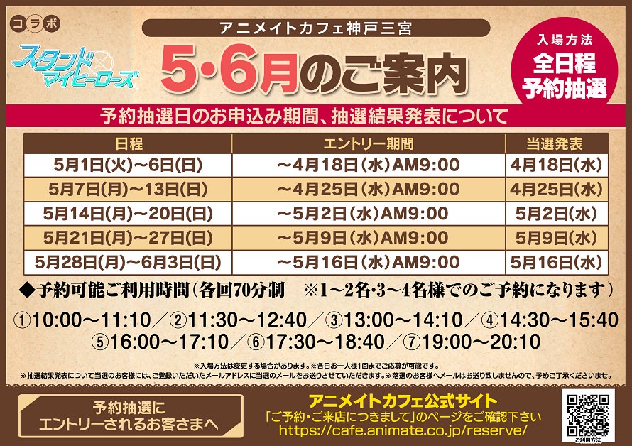 【スタンドマイヒーローズ×アニメイトカフェ池袋3号店・神戸三宮】ただいまより、5月以降の抽選予約受付開始!皆様のご予約をお待ちしております!ご予約はコチラ⇒ https://t.co/m3XQs0Q94q #スタマイ pic.twitter.com/ohwUf7d4Ar