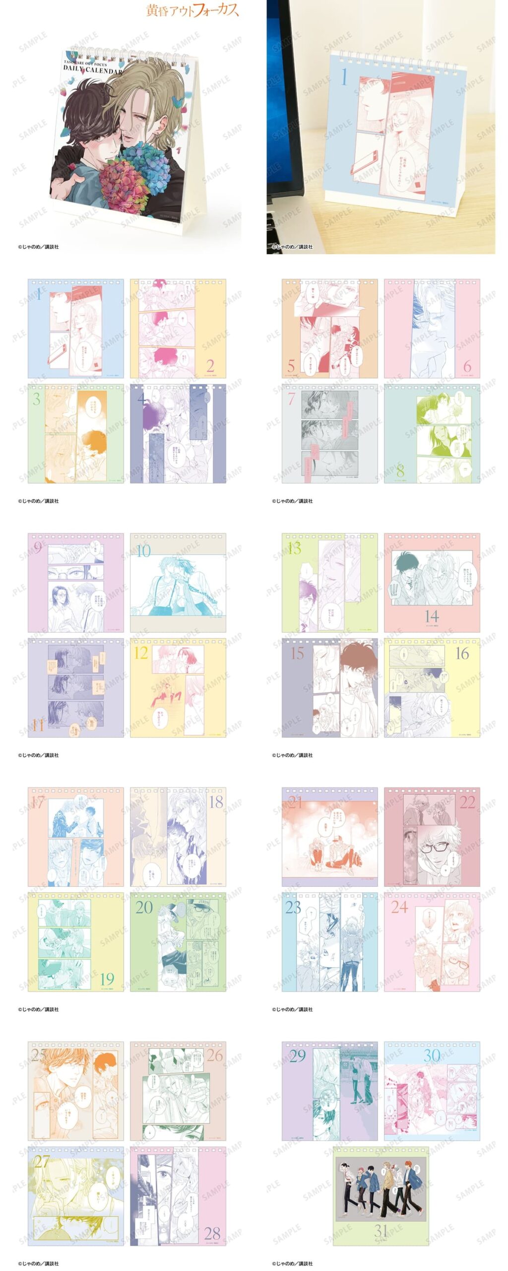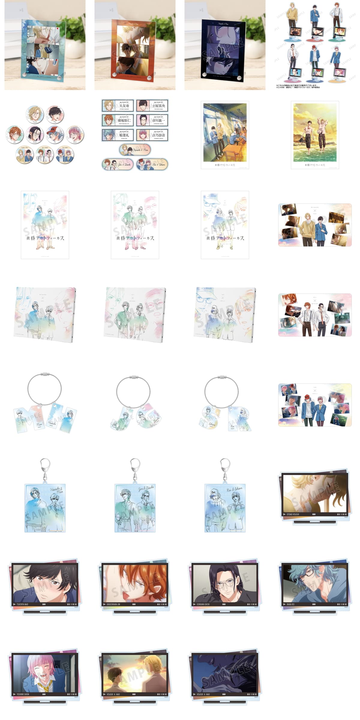 「黄昏アウトフォーカス」シリーズから、作中の印象的な場面を365日堪能できる「毎日名シーンカレンダー」や、各ペアの漫画コマをデザインした「A3マット加工ポスター」など、作品の軌跡を日常で楽しめるアイテムが登場。