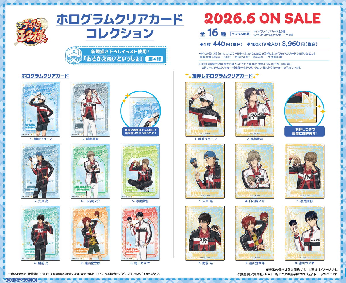 「ジャンプフェスタ2026 (JF2026)」ショウワブースの『テニみくじ』で登場した新規描き下ろしイラストを使用した新商品が予約受付スタート!「アクリルキーホルダー」&「ホログラムクリアカードコレクション」の全2種がラインナップ、