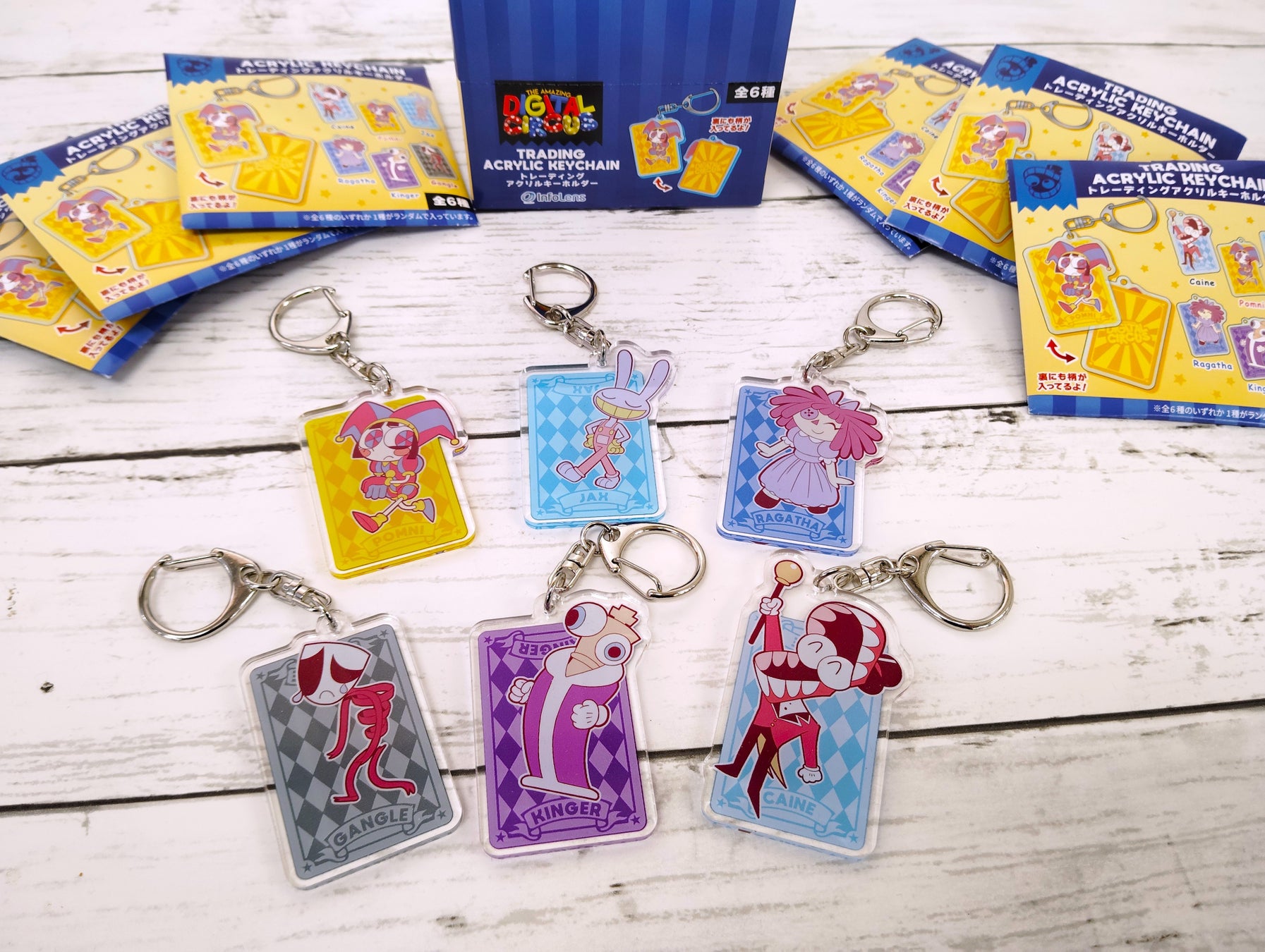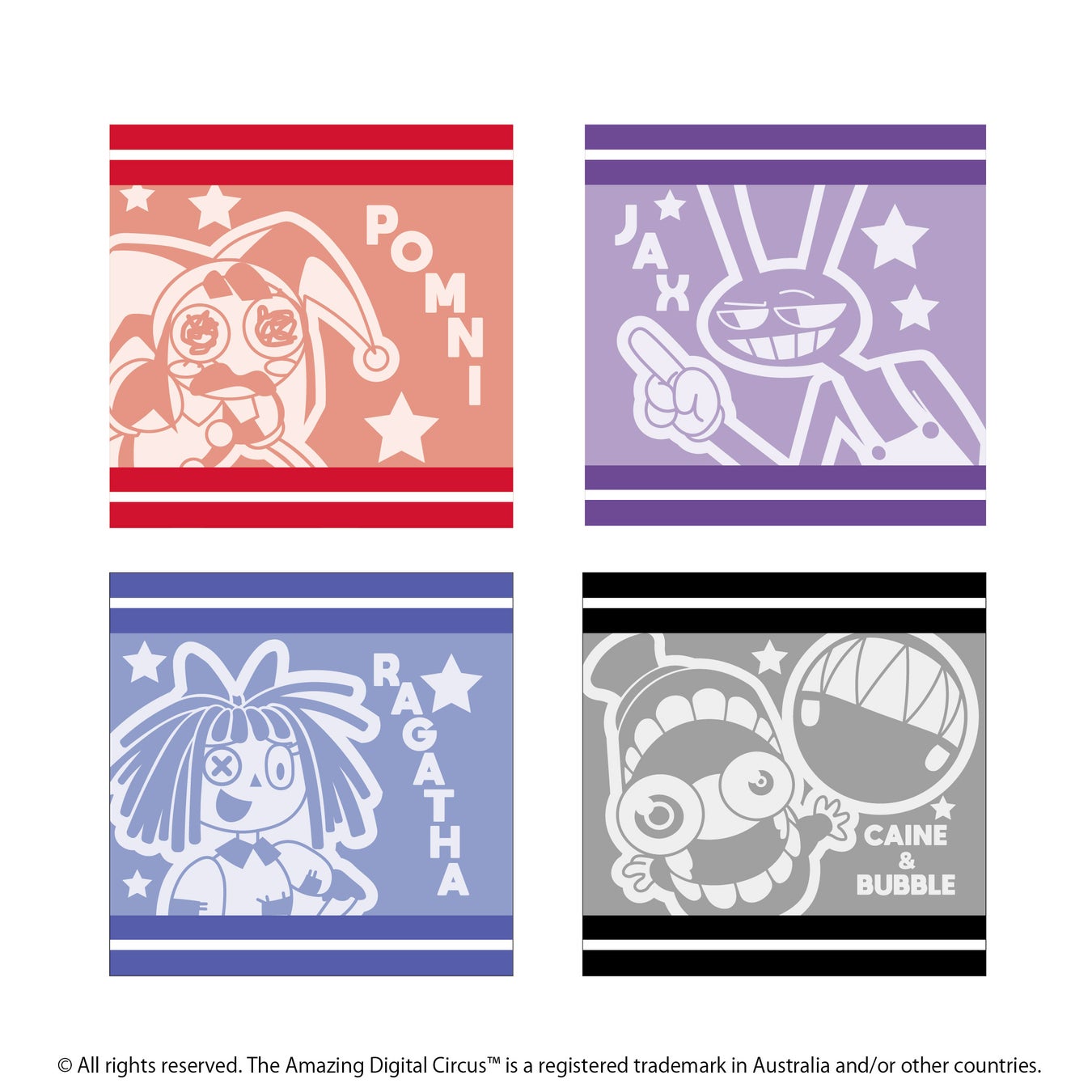ポムニ・ジャックス・ガンミグー・ケイン・ラガタたちのポップなデザインを使用した「ぬいぐるみ」「PVCパスケース」「ハンドタオル」「クリアファイル」「トレーディングアクリルキーホルダー」などがラインナップする。