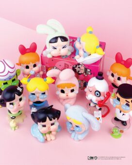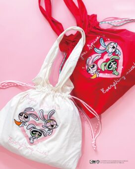 ブロッサム・バブルス・バターカップたちが、”うさ耳”や”焼き菓子”をモチーフにデザインされた「刺繍バッグ」「フィギュア」「ランダムマスコット」などがラインナップする。
