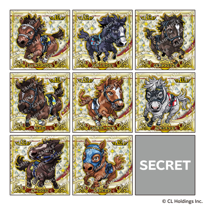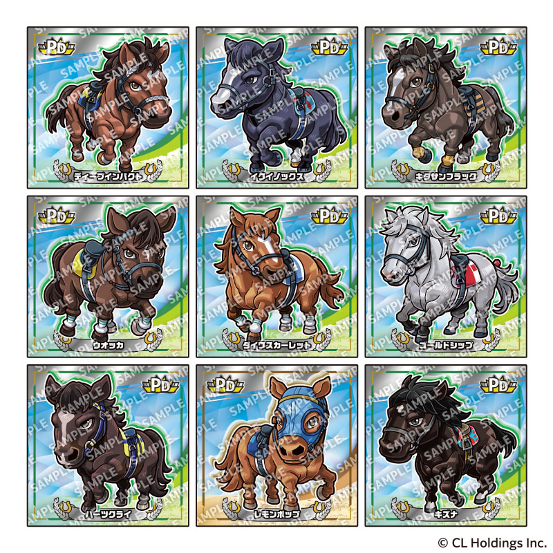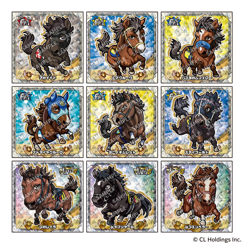 「キラコレ」シールシリーズ『サラブ烈闘デフォルメシールオーナーズVol.1』には、時代を彩った名馬たちがデフォルメシールになって登場! 全シールキラキラ輝く仕様。