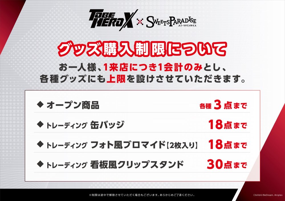 TO BE HERO X × スイーツパラダイス2店舗のグッズ