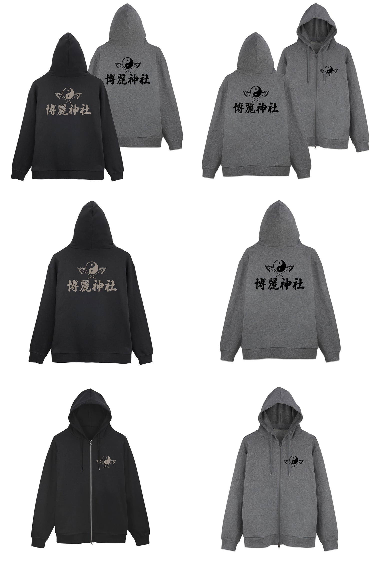 「東方Project」博麗神社 ジップパーカー Ver.2.0 [ブラック /ミックスグレー] (M・L・XL・XXL) 各8,800円(税込)