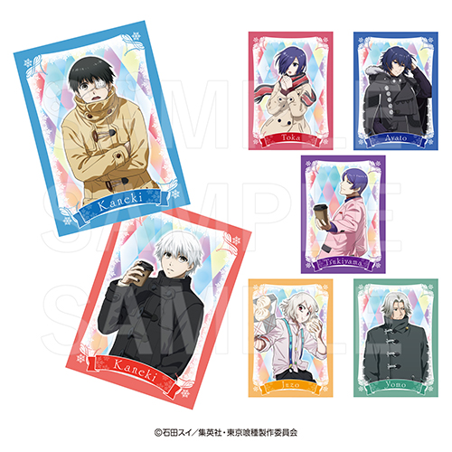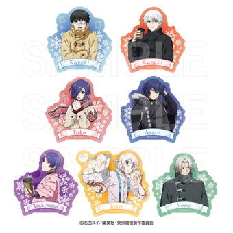 金木研・霧嶋董香・鈴屋什造・霧嶋絢都・月山習・四方蓮示たちが「冬」をテーマに描かれたイラストを使用した「アクリルスタンド」「トレーディングメタリック缶バッジ」「ダイカットステッカーセット」や、オリジナルデフォルメイラストシリーズ「イートゥーン ステッカー」などがラインナップする。