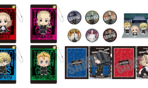 特攻服を着たデフォルメ姿が可愛い佐野万次郎 (マイキー)・龍宮寺堅 (ドラケン)・松野千冬・花垣武道たちの「合皮パスケース」「アクリルジオラマ」などがラインナップ。
