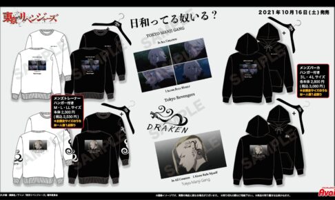 東京リベンジャーズ × しまむらグループが展開するカジュアルブランド「Avail (アベイル)」全国にて、2021年10月16日より「マイキー(佐野万次郎)」と、「ドラケン(龍宮寺堅)」をモチーフにした限定ハンバー付きトレーナー&パーカーのトップスアイテムが発売される。