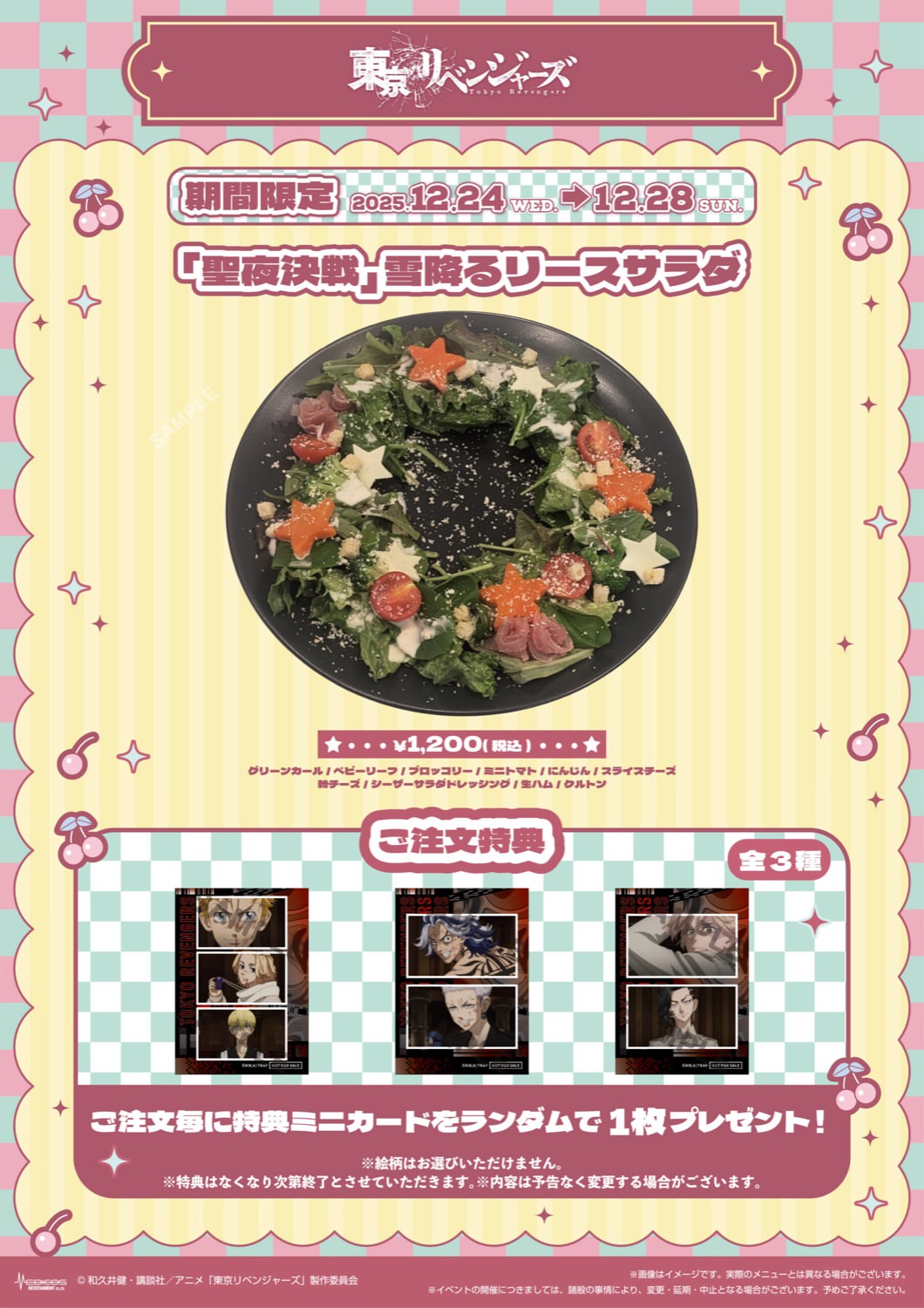 2025年12月19日よりCAFE EPIC TALE 大阪にて開催される「東京リベンジャーズ カフェ」では、「聖夜決戦」にちなんだメニューが登場!