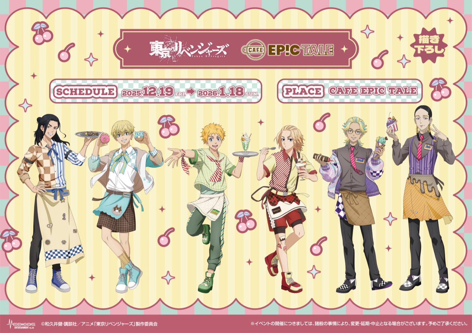 和久井健先生による人気漫画を原作としたTVアニメ「東京リベンジャーズ (東リベ)」× CAFE EPIC TALE 大阪 によるコラボカフェが、2025年12月19日〜2026年1月18日までの期間限定で開催される。