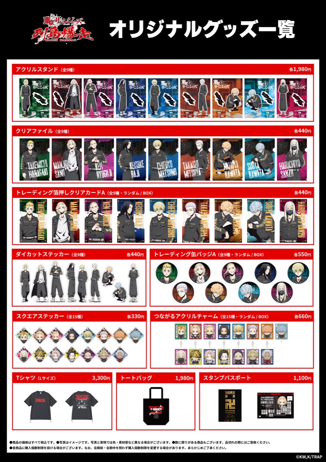 2026年4月11日より開催される『東京リベンジャーズ 列島爆走』では、「アクリルスタンド」や「スクエアステッカー」「つながるアクリルチャーム」などがラインナップする。