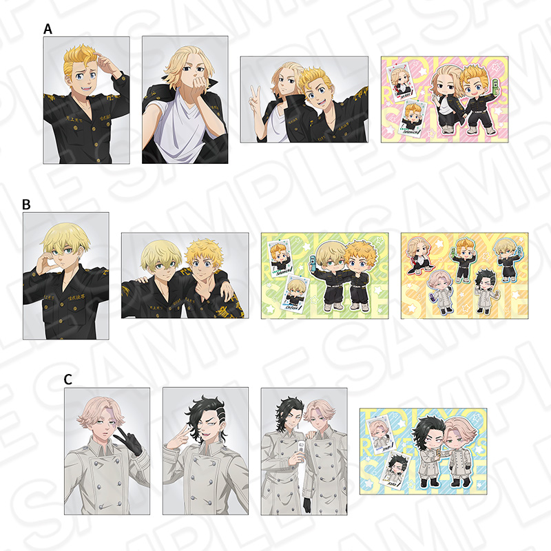 花垣武道・佐野万次郎・松野千冬・龍宮寺堅・三ツ谷隆・乾青宗・九井一たちが、自撮りを楽しむイラストを使用した、「ホログラムカンバッジ(ブラインド) Selfie ver.」「カンバッジ(ブラインド) Selfie ver.」「デカアクリルスタンド Selfie ver.」などがラインナップする。