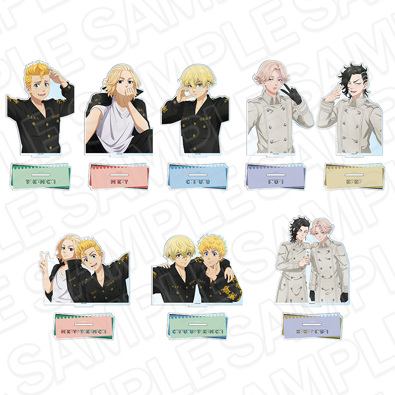 「東京リベンジャーズ (東リベ)」ポップアップストアにて、グッズをお買い上げ3,000円(税込)毎に、特典として「ブロマイド 全9種」をランダムで1枚プレゼントされる他、「特大アクリルフィギュア 全8種」から好きなキャラクターが選べる抽選会に参加できる。