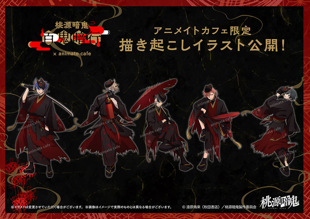 「桃源暗鬼」カフェでは、“和風妖怪”をイメージしたアニメイトカフェ限定の描き起こしラストや、作品の世界観をイメージしたコラボメニューが登場!
